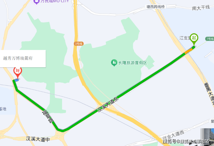 从地理位置看,离万博还是有点远的,本身汉溪大道也比较长,周边开发也差不多,和樾府、长隆悦府一二期以及欢乐世界动物园占的地方都挺大的,这种低密度的改善大盘是近十年万博板块唯一的一个。