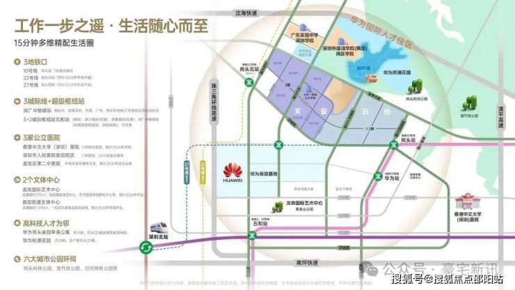 高精尖圈层聚落:毗邻华为总部基地,周边吸引康冠、神舟等众多知名企业,培育逾600家高新技术企业。作为全球第三大万亿级电子信息产业集群承载区,坂田汇聚了庞大的高素质精英人群,区域发展前景广阔。