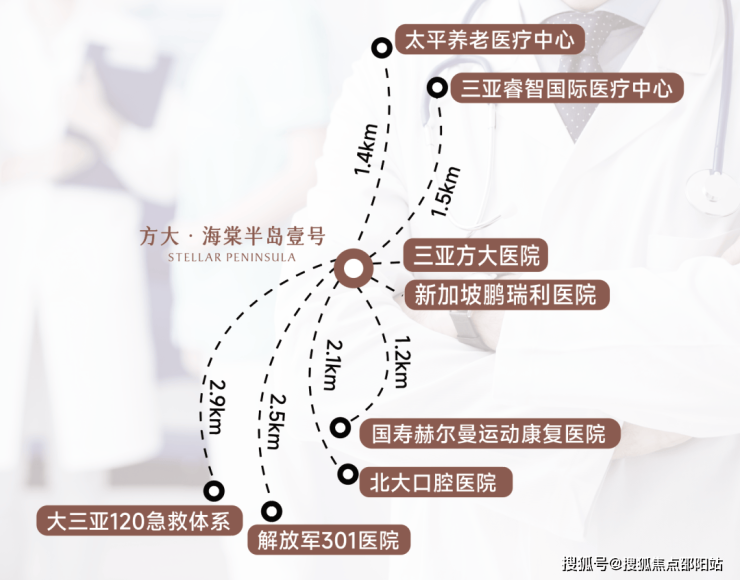 汇聚解放军总医院海南分院、北大口腔医院三亚分院、国寿赫尔曼康复中心、上海嘉麓医院三亚医院(规划中)、方大医院(2026年开工)等顶级医疗力量,串联成全球顶级医疗资源聚合带。