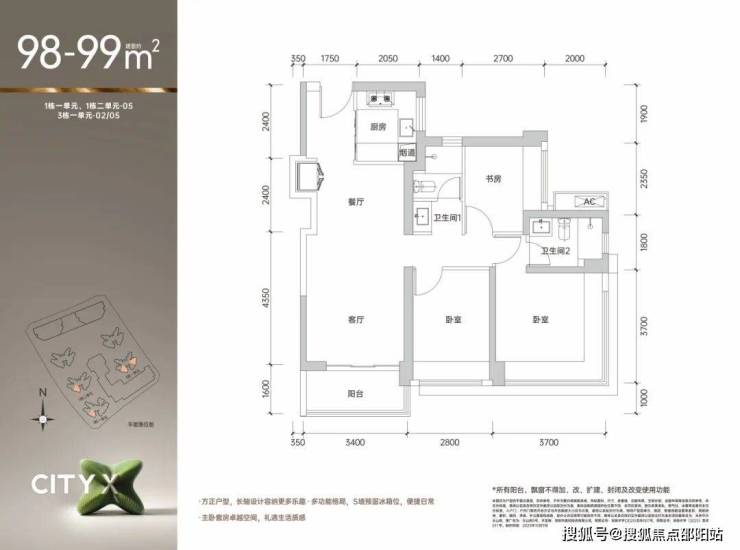 🔥【𝟖𝟖/𝟗𝟗㎡舒阔𝟑房】🔥