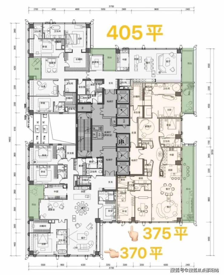 大平层设计(1149㎡):项目最大户型面积达1149㎡,采用大平层设计理念,满足高端改善需求。