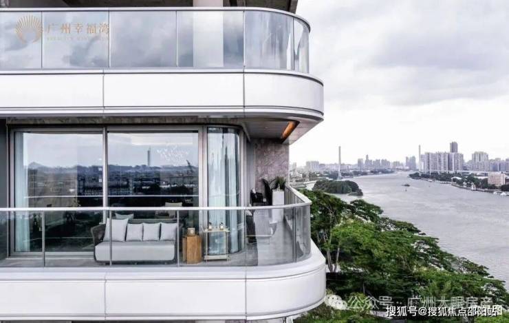更震撼的体验,是当你步入阳台时。弧形玻璃的设计,让江景全画幅被你的视觉所占有,带来极强的视觉冲击力。驻足于此,你不需要去眺望江景,而是开阔的珠江直接将你环抱。