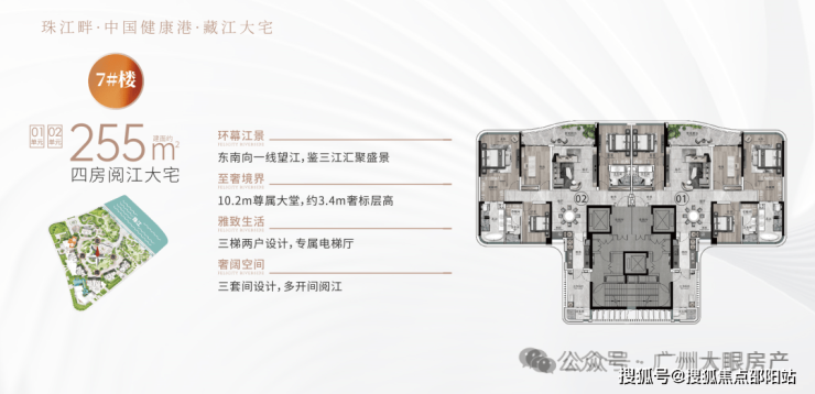户型:建面约233-285㎡四至五房,东向/东南向一线望江,极致3.4-3.6m层高