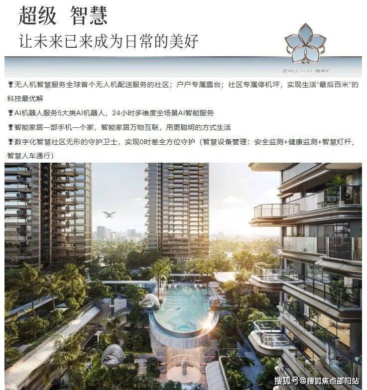 珠海首个四化新型住宅作品,超大赠送面积,实得率超100%!以创新设计打破常规,同等面积多一间房;百变全景飘窗,观景与功能性自由切换,高附加值赠送,打造N种生活场景;标配约3*3米无人机停机坪,与阳台组合成18-30㎡环幕山海观景台,让家成为风景的容器。