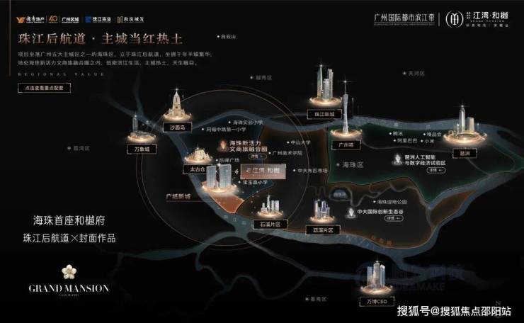 项目坐落广州主城海珠区,立于珠江后航道,坐拥千年羊城繁华;地处海珠新活力文商旅融合圈之内,低密滨江生活,主城热土,天生瞩目