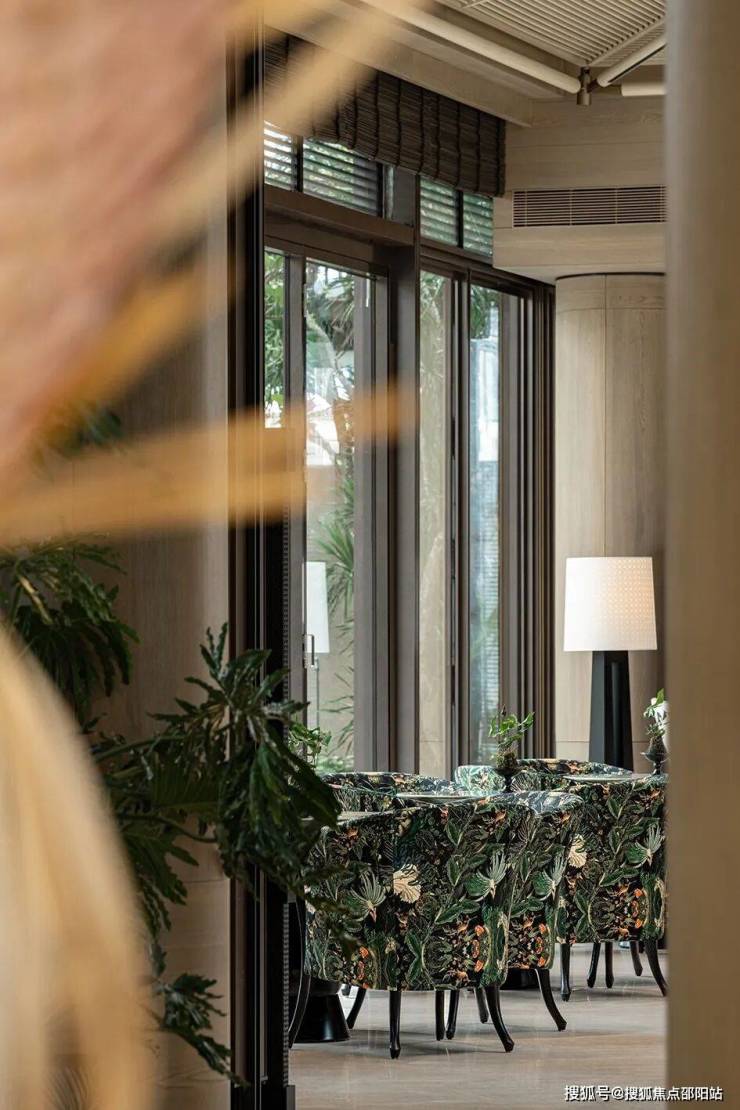 室内巨大的落地窗让自然光充盈整个大厅,提供绝佳的视野,使空间更加宽敞明亮。