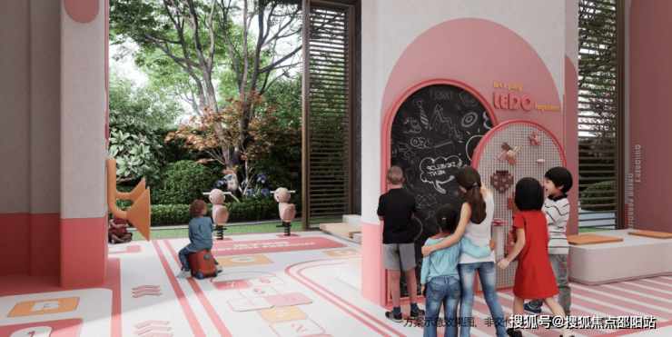 约1500平24小时运动聚落,设置羽毛球、乒乓球、儿童游乐园、成人健身器材等