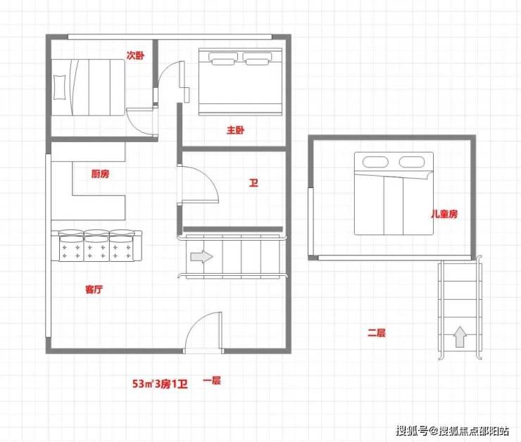 53平3房(总价129万起)