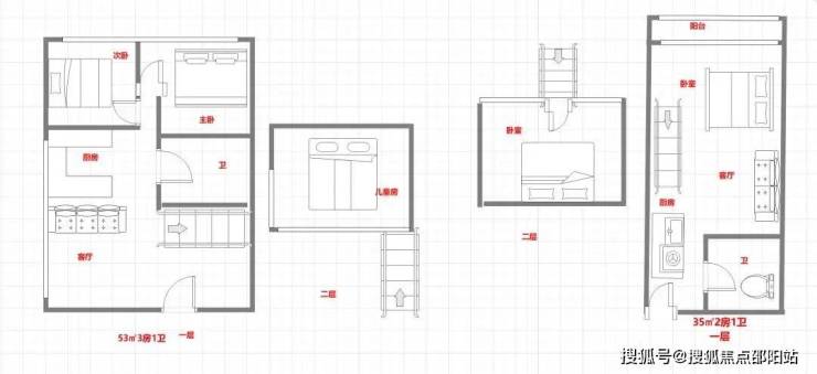 在售户型:35/53㎡2-3房