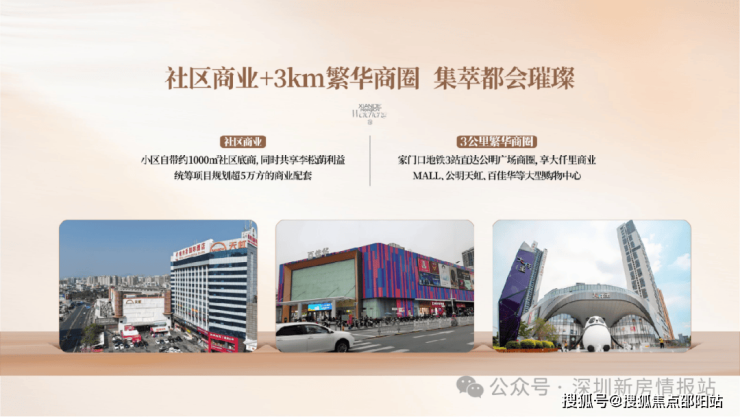 【繁华商业汇聚】建面约1000 ㎡社区商业,周边李松蓢百万建面利益统筹项目一期地块,规划有社区配套底商和蔬鲜农贸市场。地铁3站直达公明广场站,享大仟里商业MALL、公明天虹、百佳华等繁华配套