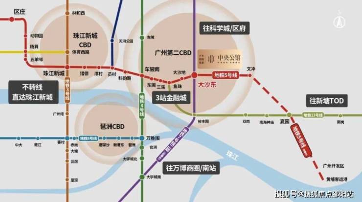 同时也是7号线的大沙东站,坐地铁3站黄埔科学城,7站番禺万博,约半小时内畅达广州各大CBD如珠江新城CBD、琶洲CBD、万博CBD。