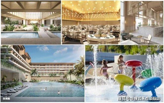 5. 五星级标准度假村:世界知名设计单位如恩倾情打造,规划有343间客房(包含39间适老化房间)、中西餐厅、天际线酒吧、1000㎡宴会厅、多功能会议设施及丰富儿童活动区域等,呈现高品质度假体验。