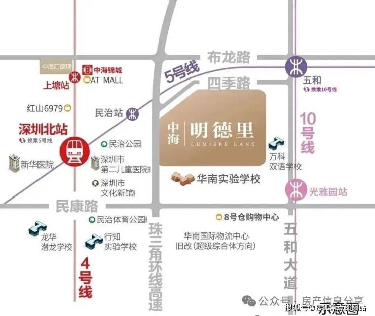 中海明德里背靠北站商务区,快速接驳深圳北站,1.5公里内坐享民治,光雅园双地铁站。