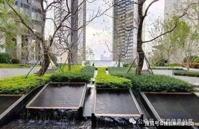 “近看落花至,远闻流水香”。听水入境,迈入第一重归家礼遇——“林下台地”生态迎宾水景,规则、细腻的线式跌水将视线高度抬高,淙淙的流水之音主动打破建筑的单调,赋予景观独特而灵动的美感。