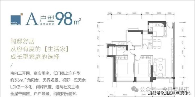 98㎡的3房2厅2卫,设计的是经典竖厅格局,LDKB一体化设计,客厅3.6米开间,三开间朝南,动静分区,3个卧室分别做到了主卧13.69㎡/次卧11.62㎡/次卧5.76㎡(包含墙体飘窗),都不用搭配飘窗做床,L型厨房,卫生间干湿分离,得房率约:89%(包含赠送),西南、东南或正南朝向