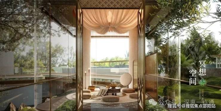 奢阔尺度的冥想空间、能量运动舱,配置巨幅落地玻璃,不仅引光入室,更将繁花绿意与下沉庭院的水景尽收眼底,实现建筑、自然与艺术的无声交融。
