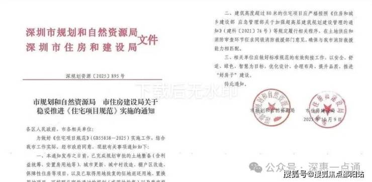 10月9日,一份由深圳市规划和自然资源局、市住房和建设局联合发布关于稳妥推进《住宅项目规范》(GB55038-2025)实施的通知(以下简称《通知》),引发市场高度关注。《通知》明确,即日起报批建设的高度超80米住宅项目,应严格按照《住房和城乡建设部 应急管理部关于加强超高层建筑规划建设管理的通知》(建科〔2021〕76号)等规定履行相关程序,在土地供应和消防审查环节征求同级消防救援部门意见,确保与我市消防救援能力相匹配。