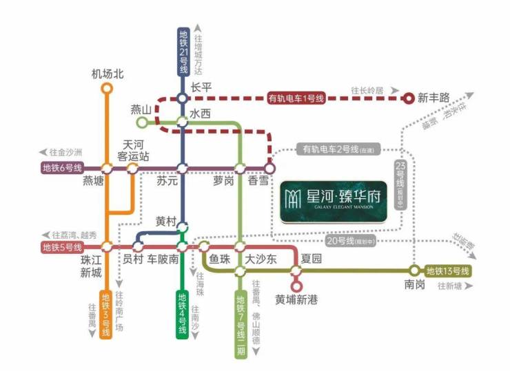 ✅立体交通:三地铁两城轨交汇,快速连接全城。项目临近地铁6号线香雪站,4站直达天河;7号线、21号线环绕,20号线、23号线(规划中)加持,家门口即有1/2号有轨电车站,通勤高效便捷。