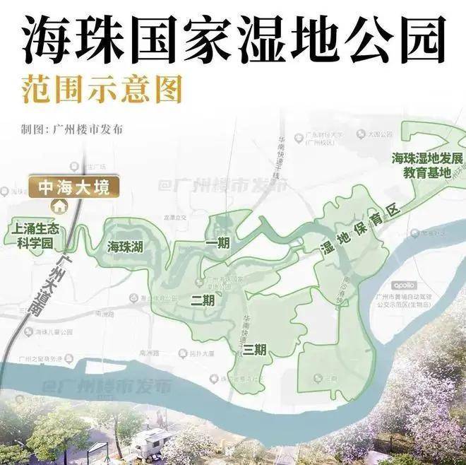 享受“一河环抱,两岸三园”的优美环境中,也叫“三洲之上” ◎城市绿洲:外部有1100万方海珠湿地