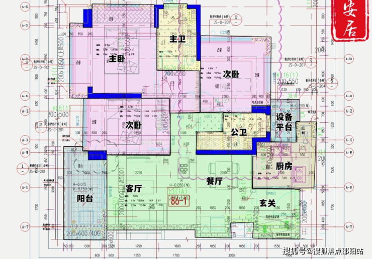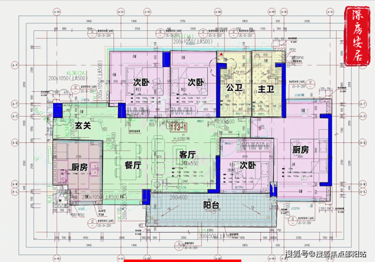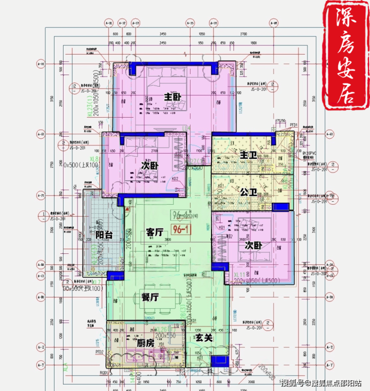 96㎡的3房2厅2卫(-1),设计的是经典竖厅格局,进门入户玄关,客厅3.7米开间,LDKB一体化,S墙设计预留冰箱卡槽位,动静分区,三开间朝南,U型厨房,公卫三段式分离,还带1个设备平台,东南朝向。