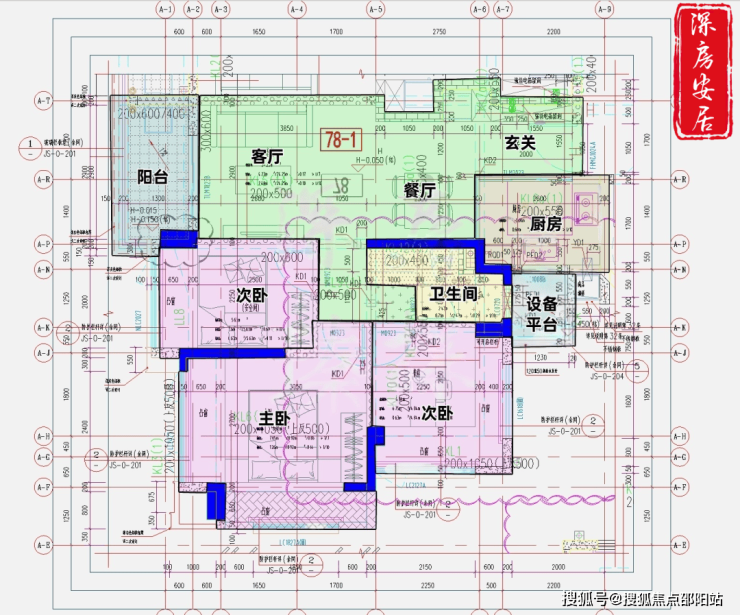 78㎡-3房2厅1卫,设计的是经典竖厅格局,客厅3.3开间,LDKB一体化,S墙设计预留冰箱卡槽位,动静分区,三开间朝南,U型厨房,卫生间三段式分离,还带1个设备平台,得房率约88.34%(包含赠送),西南朝向。