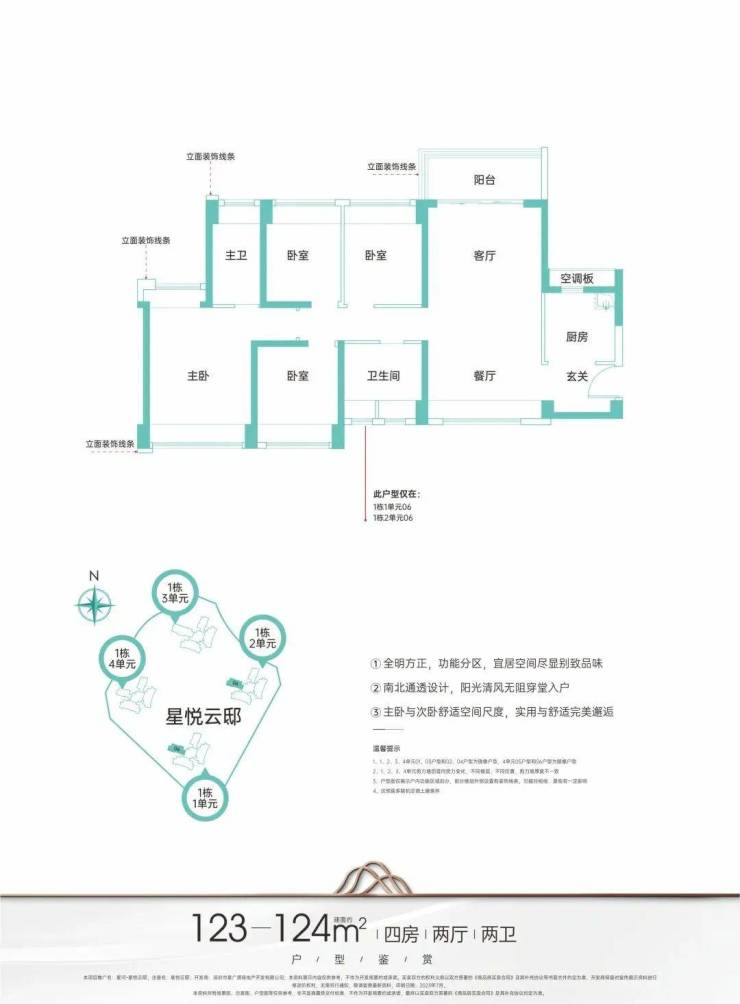 主力户型建面约95-124㎡臻品三至四房,