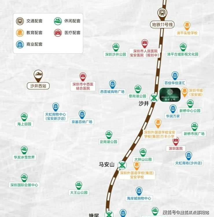 新桥智创城,深圳首个平方公里级工改工项目,规划产业空间402万㎡,旨在打造“南深圳湾科技园,西新桥智创城”的产业布局。沙井街道定位“西部中心”,锦和玉鸣府将受益于高新企业聚集及深中通道、深珠城际等交通建设,成为深圳西部城市新中心。项目周边交通网络发达,包括福永大道、宝安大道等要道,为居民提供便捷出行。