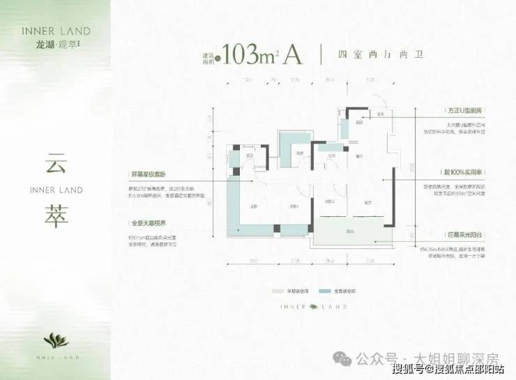 超100%实用率 新规越级大四房尺度,全屋飘窗高赠送,媲美市面约150㎡大平层体验。