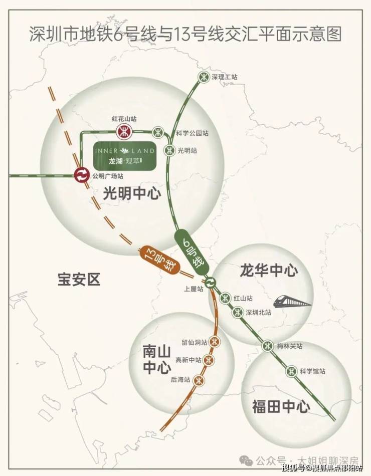 作为光明中心惟一双轨交汇,6号线带领光明融入深圳核心发展脉络,13号线二期(在建中)即将正式通车,将高效接驳南山,加速科创人才及城市资源向中心集聚,执掌光明未来。