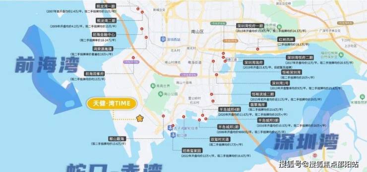 深圳居住价值最高的西部黄金海岸线:红树湾—深圳湾—东角头—太子湾—蛇口—赤湾—前海湾—宝中,沿线汇聚了众多城市级地标、TOP级豪宅,房价普遍在10万+/平到20万+/平,堪称深圳居住价值天花板。