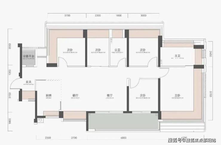 主卧套房+次卧类套房设计,提升家庭各成员居住尊严。