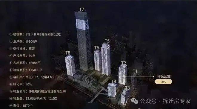 南区分为:T5、T6、T8公寓,T7为环球商务中心。