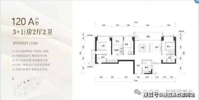120㎡:客厅与卧室连通9.6㎡超大阳台,主卧带5.2㎡衣帽间,还有观景小阳台,主要为东南和西南朝向