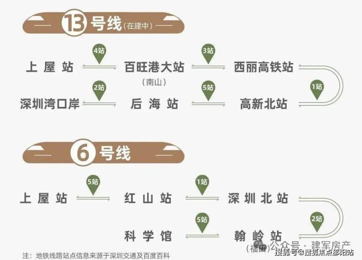 项目约直线距离400米抵达6号线、13号线(在建中)上屋站,6号线8站福田(翰岭站),13号线(建设中)4站南山、8站科技园(高新北站)。