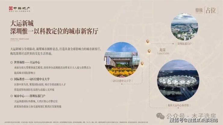 项目所在片区为东部高智力浓度片区,周边分布诺贝尔科学家实验室(数量占全市30%),更聚集QS排名32位的香港中文大学(深圳)、深圳北理莫斯科大学等顶尖高校,打造国际创新策源地,持续吸引高精尖人才。(信息来源:龙岗发布、香港中文大学(深圳)官网)