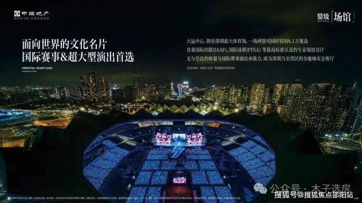 大运中心拥有深圳最大体育场,一场两馆可同时容纳约8.1万观众,具备国际田联(IAAF)、国际泳联(FINA)等最高标准认证的专业场馆设计,是国际赛事与超大型演出的首选。项目头排对望大运中心,,近享家门口的世界盛会。(信息来源:龙岗区文化广电旅游体育局官网)