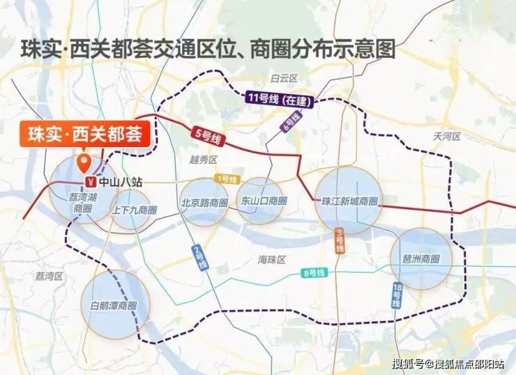 至于11号线(已开通)则是广州首条环线,串连越秀、荔湾、天河等五区,沿线不仅有白鹅潭、琶洲等全新的经济中心,还有江南西、广州塔等成熟高端商业区域,繁华的片区近在咫尺,项目可谓出生便手握王牌。