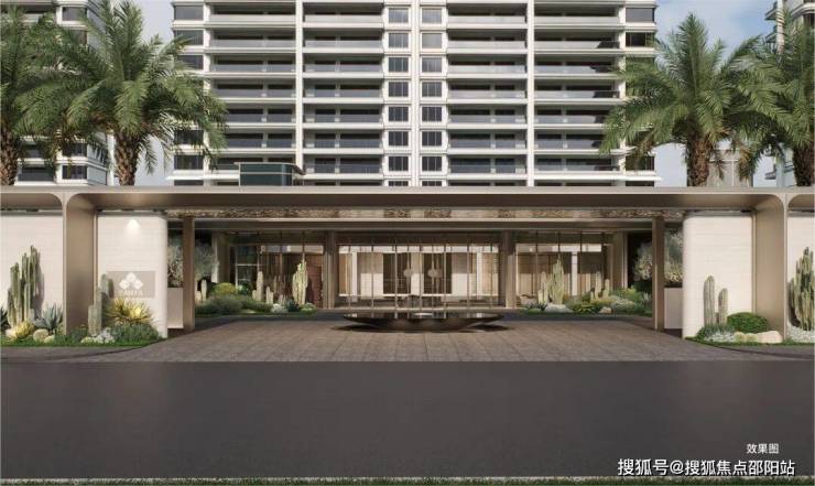 •一进:酒店式归家 | 近 70 米长弧形落客门廊,围合仪式感入口前院