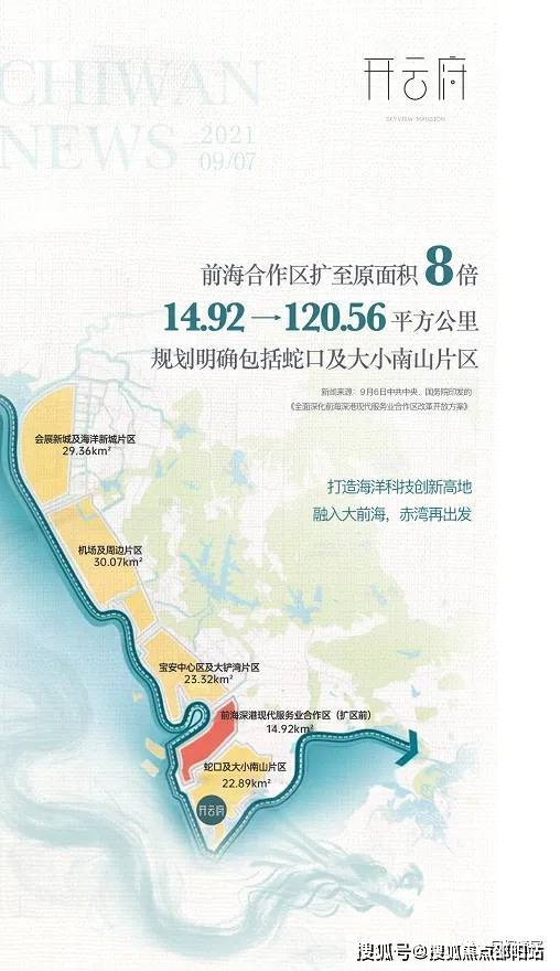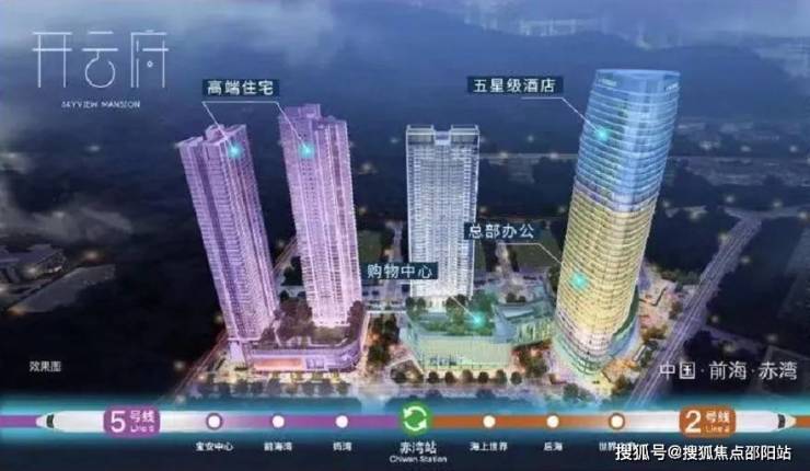 3.2平方公里赤湾先发·城市双地铁综合体,集高端住宅、购物中心、总部办公、五星级酒店等复合业态于一体,筑就赤湾地标,焕新山海生活。