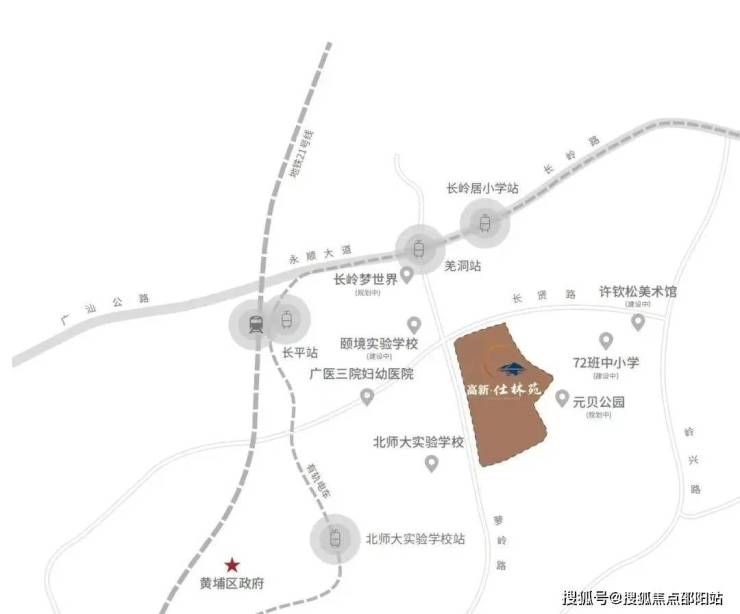 直线距离约800米地铁21号线长平站(走路大概1.1公里),1站黄埔区府(水西站),2站万达广场(苏元站),5站到天河(天河智慧城站);