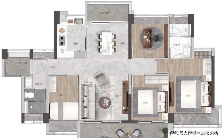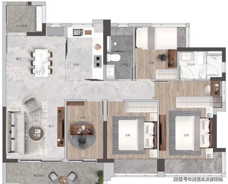 高配双主套三卫,书房可作主卧延展空间,打造总统级套房