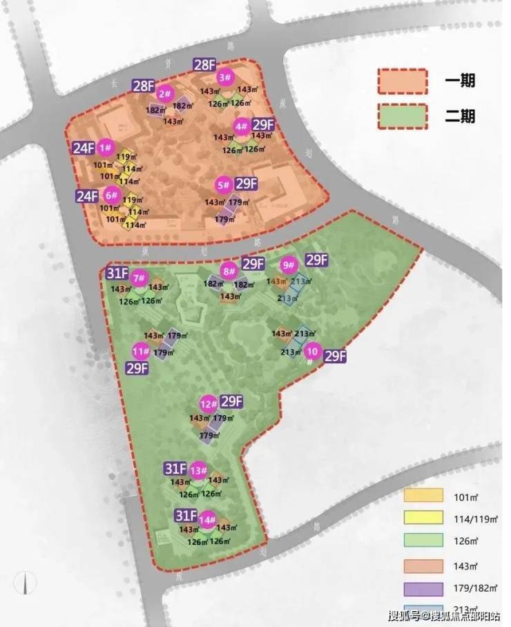 全盘有36万方,有14栋28-31层高的楼栋,由南北两块地组成,分两期开发。