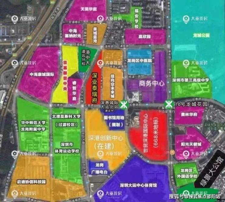 大运新城北部总部基地、深港国际创新中心、天安数码城、留学生创业园、深港国际中心(停工);