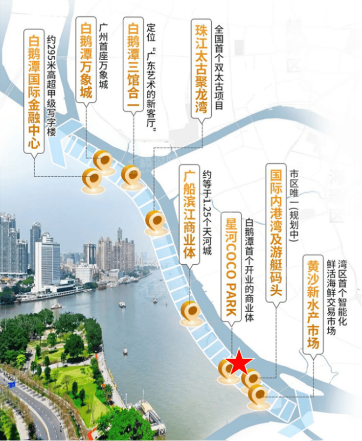 保利珠江天悦的业主大概都有「选择困难症」——毕竟周边商圈太卷了。已经开业的山姆会员店,是囤货党的快乐老家;太古里(在建)的奢侈品旗舰店,适合刷爆信用卡的纪念日;而聚龙湾的COCO Park,则是周末遛娃的绝佳去处。距离星河COCOPark仅约200米,还有大湾区首个智能化鲜活海鲜交易市场、世界级高端水产市场旅游体验中心——黄沙水产新市场;