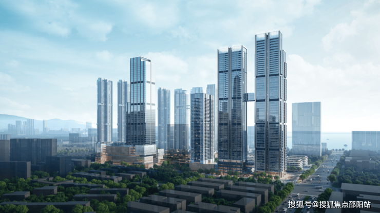 建筑群通过错动式布局形成风道峡谷,南向立面采用双银Low-E中空玻璃幕墙,北侧点缀香槟金铝板竖向线条。