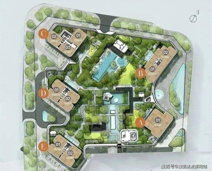 1E栋(1栋五单元)-43层:均为3梯2户,约302㎡,一层两户。