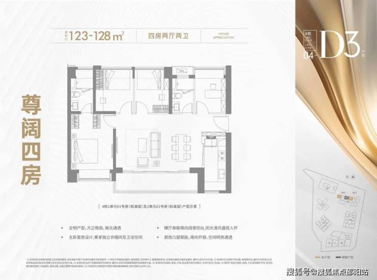 123-128㎡(四房两卫)轻奢阔绰户型,尊享高阶生活品质!