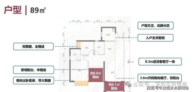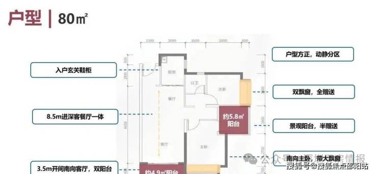 建面约80㎡的户型开间就有约3.5米,格局方正、动静分离、空间开阔、采光充足。基本上达到了市面上90㎡以上户型的尺度。