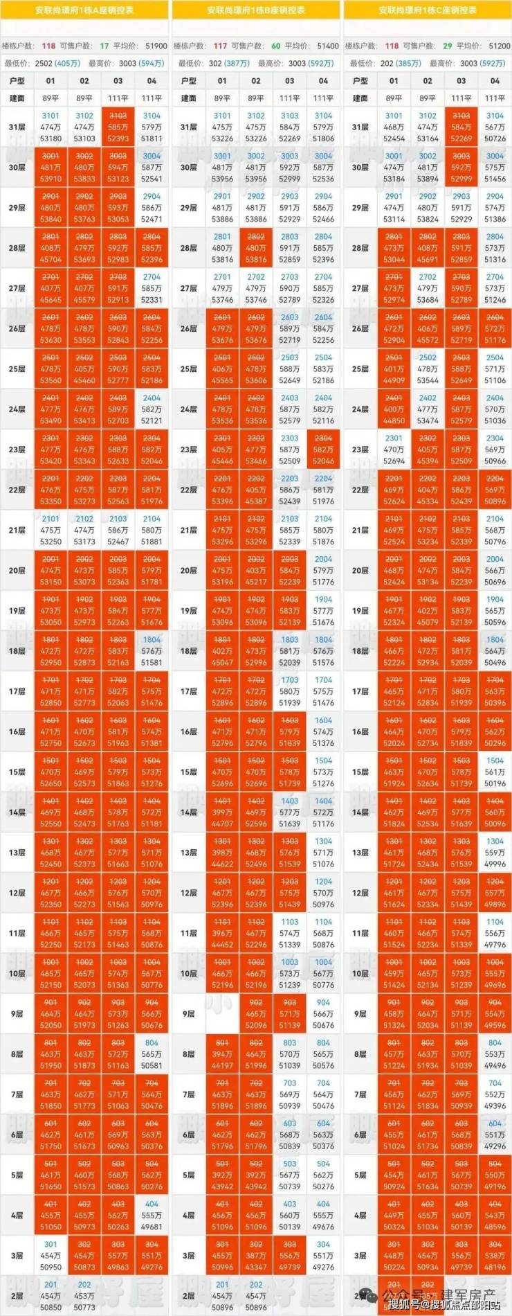 最新备案销控表:
