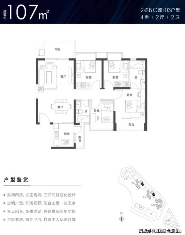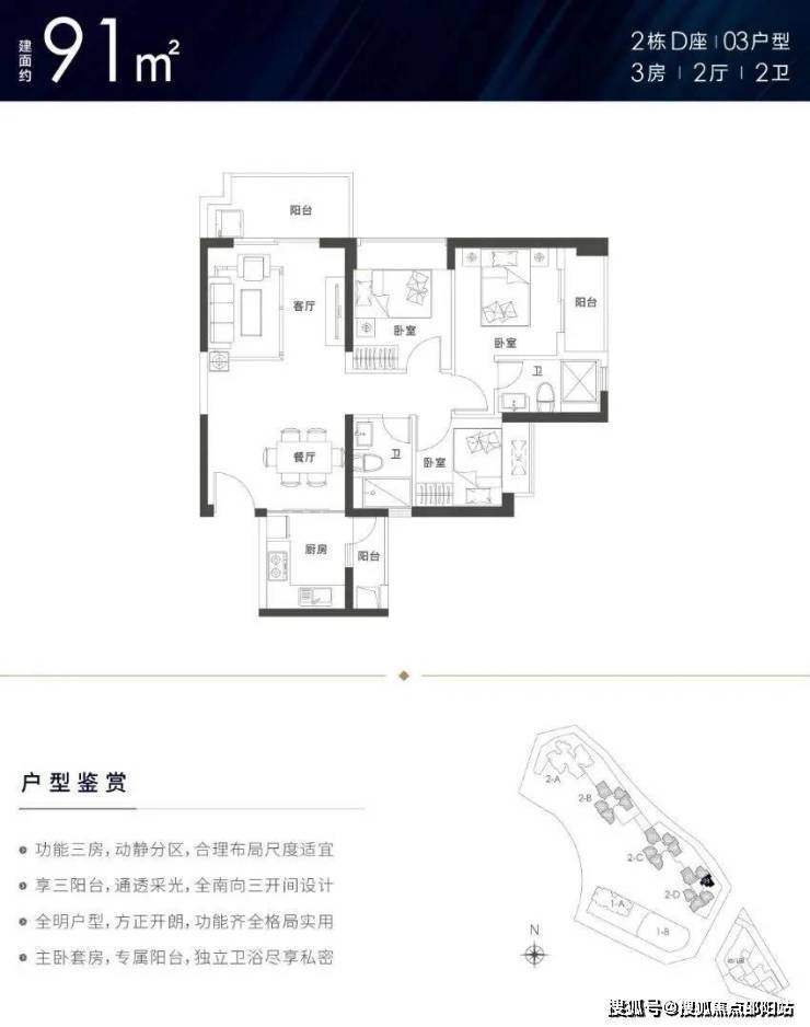 罕见三阳台户型设计,奢阔开间,超高使用率